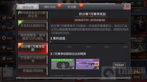 7月赛季结算段位达到精英,可得精英荣耀边框(60天),AK纪念枪(15天)
