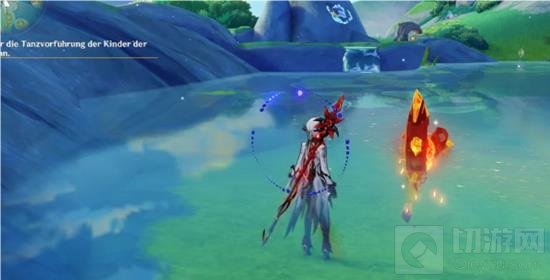 1号火神瞳:在此处池塘水面上,直接从稍高一点的地方飞过来即可拾取;