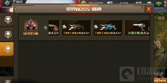 赤龙火炮获取的途径,这也就是我们唯一获取它的方法,那就是我们新出的挑战模式新地图世界BOSS,和20个好友共同组队同框进行共同战斗,击败冰火巨蜥后系统会根据我们的输出伤害进行评分,我们进行翻牌时会获取一定的赤龙火炮碎片或者赤龙火炮的成品武器,这种好事一定要叫上队友一块来战斗哦,赤龙火炮绝对值得你去拥有。