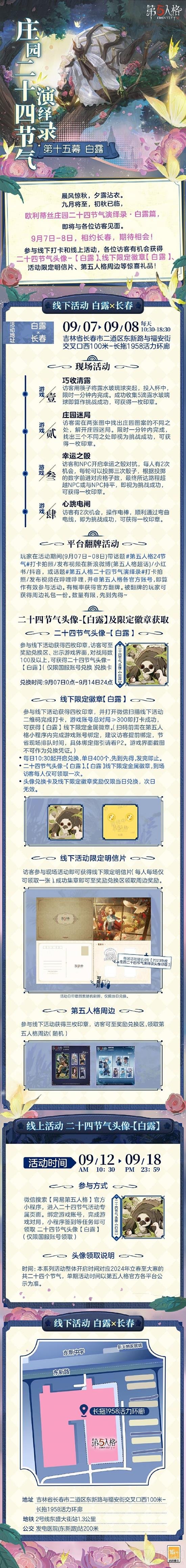 奖励:参与活动有机会获得白露节气头像兑换卡、限量徽章、限定明信片、游戏周边等。