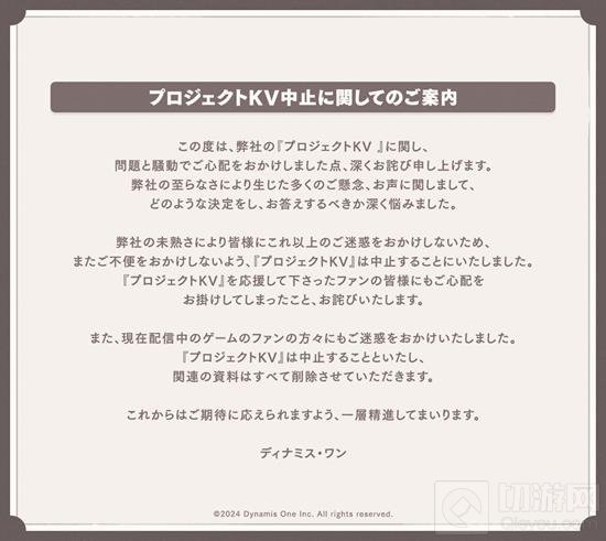 ”由于我们的不成熟,给大家带来了麻烦。为了避免为大家带来更多的不便,我们决定取消《Project KV》。对支持《Project KV》的粉丝们,我们再度表示歉意。“
