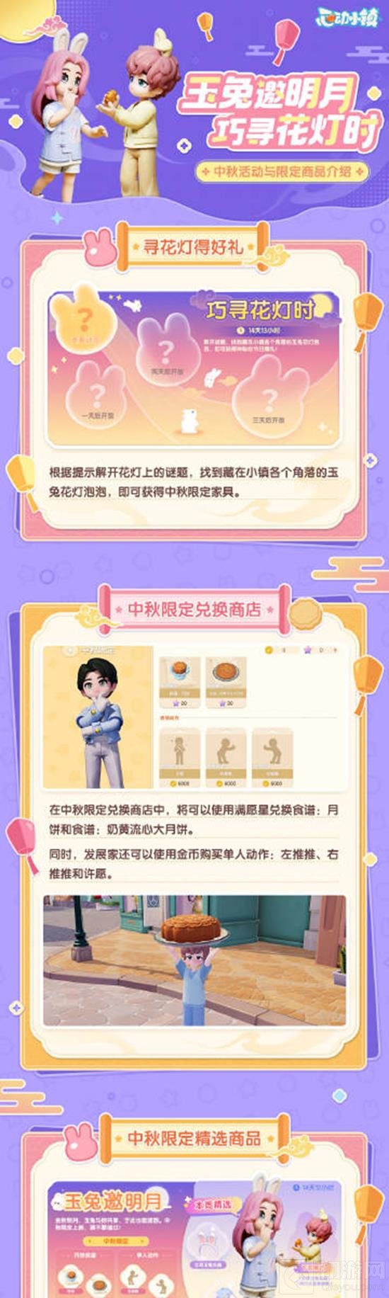巧寻花灯时:玩家需要根据提示解开花灯上的谜题,并在小镇的各个角落寻找隐藏的泡泡,通过这种方式可以获得中秋限定的家具。