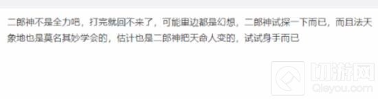 当然也有人反驳道:“二郎神不是全力吧,打完就回不来了,可能里边都是幻想,二郎神试探一下而已,而且法天象地也是莫名其妙学会的,估计也是二郎神把天命人变的,试试身手而已。”