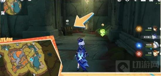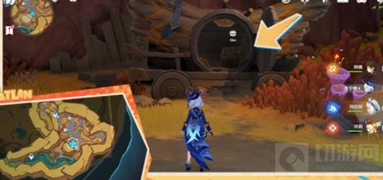 东南部洞窟,击败愚人众后使用钥匙开启运龙车。