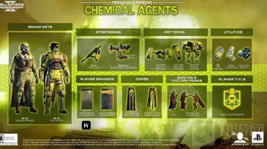 除此之外,“化学专家”债券中还将包含全新防毒盔甲(AF-02 Haz-Master和The AF-50 Noxious Ranger)和更多丰富的装饰、头衔、表情等内容。