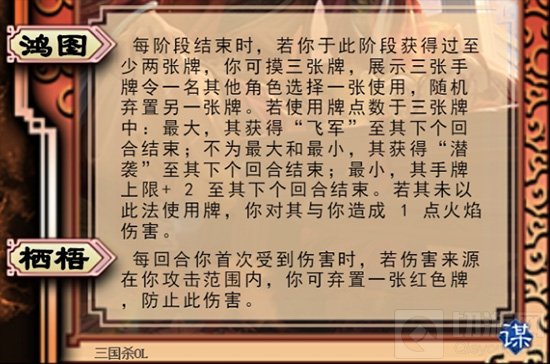 谋庞统拥有两个技能:〖鸿图〗和〖栖梧〗。