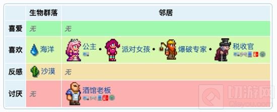渔夫会出现在有海洋生物群落的沙滩或水面附近,需要有空房子供渔夫入驻。