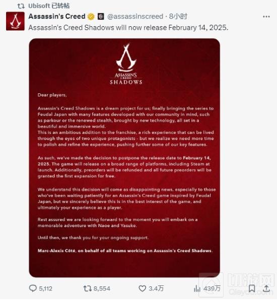 这次延期显示了育碧对游戏质量的重视,以及他们愿意根据玩家的反馈和市场反应调整发行计划。育碧希望通过额外的开发时间,确保《刺客信条:影》能够满足玩家的期待,并为该系列带来新的活力。