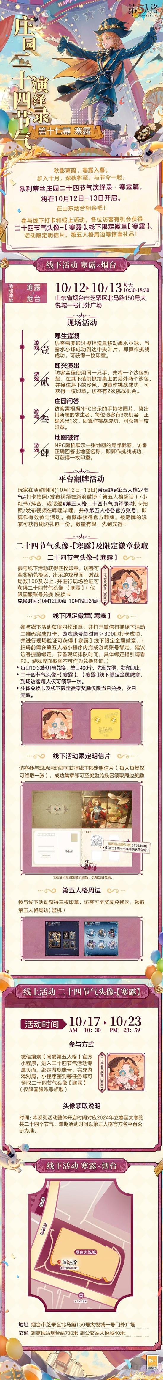 奖励限制:二十四节气头像-【寒露】和线下限定金属徽章【寒露】,每人限领一次。