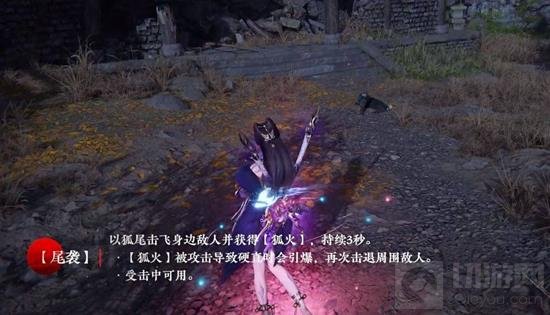 击飞身边敌人并获得狐火,狐火被攻击导致硬直时会引爆,再次击退周围敌人。