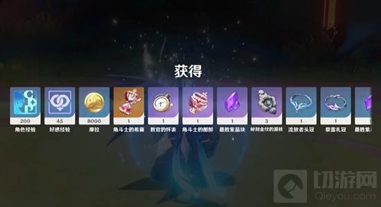 击败秘源机兵·构型械后,玩家可以获得多种掉落物品,包括冒险阅历、摩拉、好感经验等货币,以及秘刻金纹的源核(这个就是开头提到的希诺宁的突破材料)、最胜紫晶碎屑、断片、块和最胜紫晶等角色突破材料。此外,还有机会获得教官和流放者这两套圣遗物。