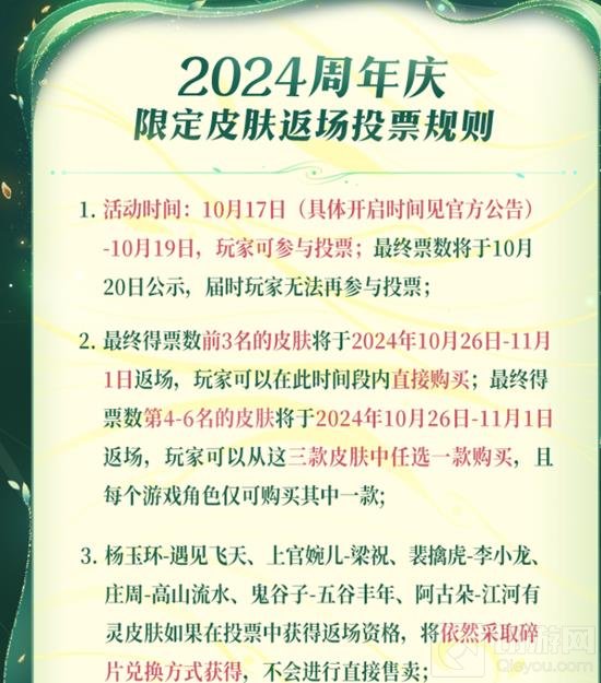 2024周年庆限定皮肤返场投票规则