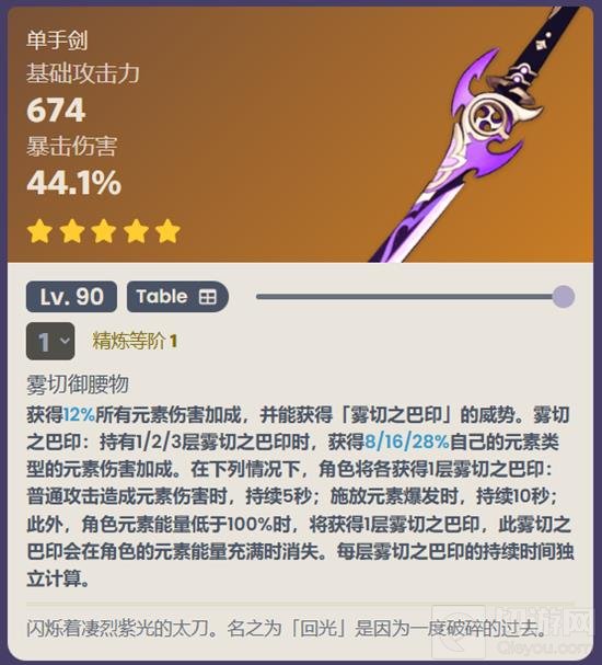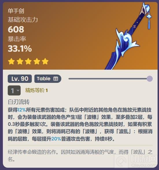 武器特效:提高全元素伤害加成和普攻伤害,适合频繁使用普通攻击的角色。