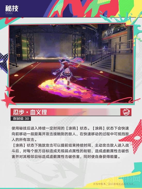 使用秘技后,乱破会进入持续20秒的【涂鸦】状态。在此状态下,乱破会迅速向前移动一段距离,并在移动过程中抵挡敌人的所有攻击。进入战斗后,会对每个敌方目标造成30点无视弱点属性的削韧,并造成相当于乱破200%攻击力的虚数属性击破伤害,同时对其相邻目标造成相当于乱破180%攻击力的虚数属性击破伤害。此外,使用秘技后还会获得20点能量,有利于快速启动大招循环。
