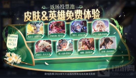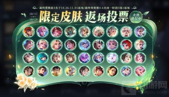 玩家投票选出返场皮肤,得票前3名皮肤将于10月26日至11月1日返场。