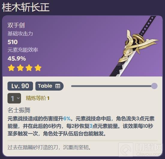 桂木斩长正是一把锻造武器,对于缺乏五星武器的玩家来说是一个不错的选择。它不仅提供较高的充能效率,武器特效还能够在多莉的元素战技命中敌人后进一步加快她的能量恢复,使她能够更频繁地使用大招为队伍提供持续的支持。