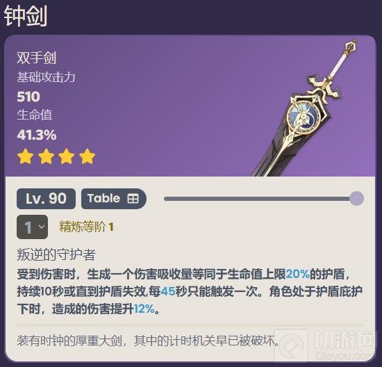属性:基础攻击力510,副属性提供生命值加成,武器特效为受伤时生成护盾,提升伤害。