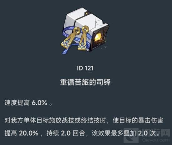 这套遗器适合需要速度和暴击伤害提升的角色,特别是那些能够频繁施放战技或终结技的角色。由于四件套效果是用于“对我方单体目标施放战技或终结技”的角色,因此四件套效果限定为了对我方单体的增益辅助角色。主C的话不建议带这套。