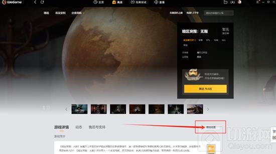 1、点击或搜索进入WeGame《暗区突围:无限》产品专区页,在页面右下角点击【前往社区】(如图红框所示);