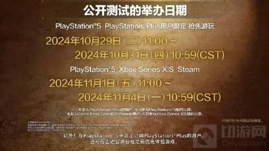 所有PS5、Xbox Series X|S和Steam用户可以在11月1日11:00至11月4日10:59之间参与公测。