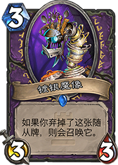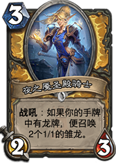 配合: 夜色镇执法官:与夜色之间的配合可以极大的增强莫罗斯的生存空间,并且召唤的生物也可以获得圣盾,这样能够为骑士带来铺场的效果,就目前变速骑的体系中也算是一种不错的方式。