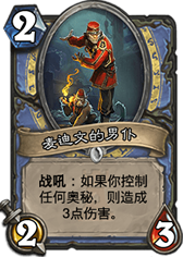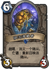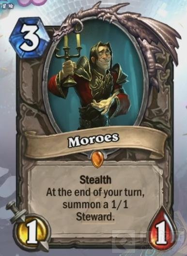 莫罗斯:橙卡,3费,身材:1/1,特效:潜行,在你回合结束时,召唤一个1/1的服务生。