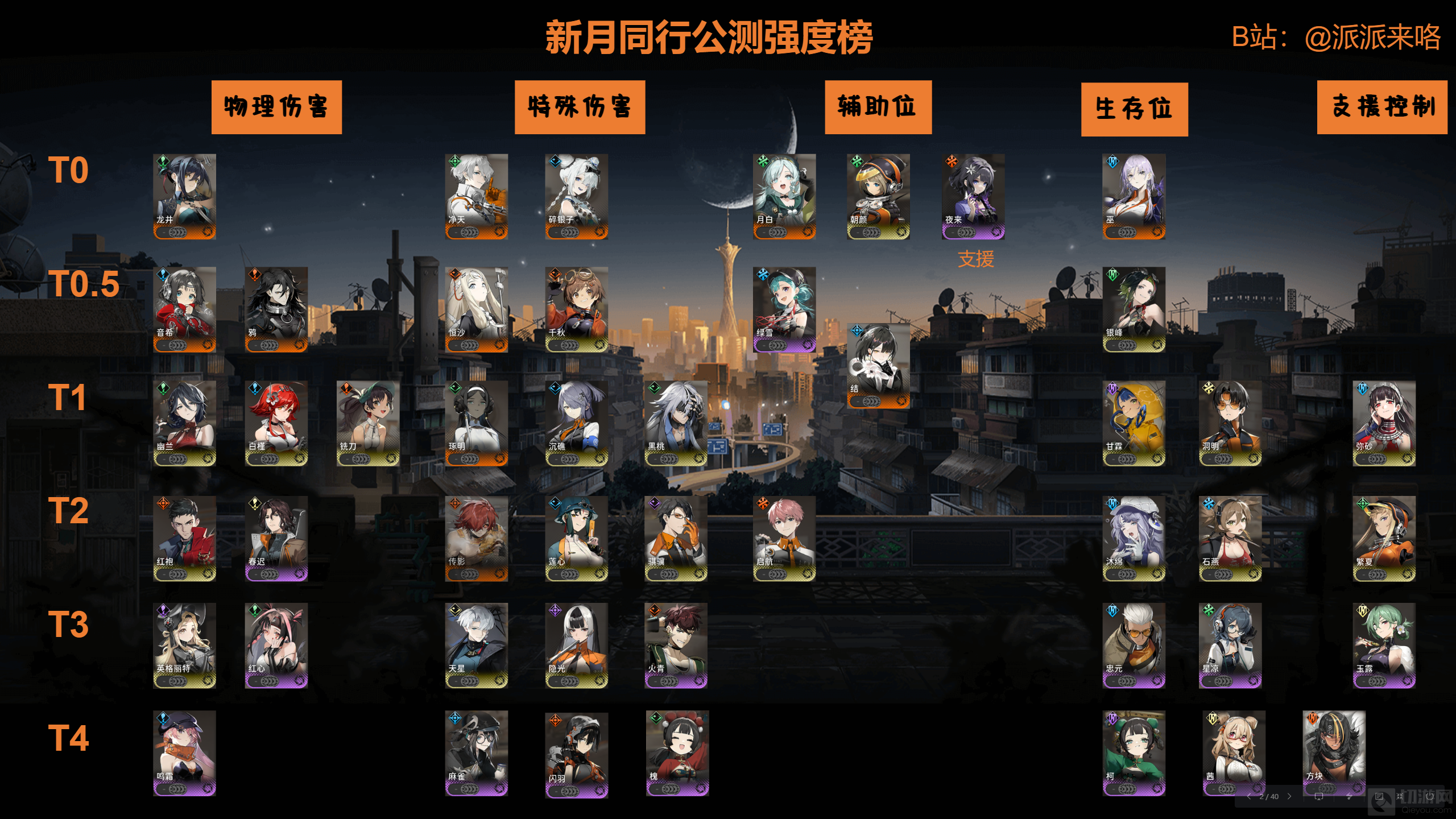 | 等级 | 物理伤害 | 特殊伤害 | 辅助位 | 生存位 | 支援控制 |