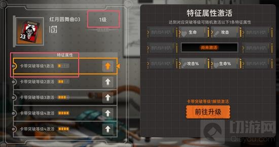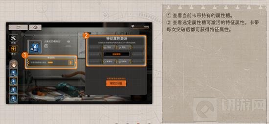 卡带需要等级足够,过低等级的卡带没有副词条。每突破一次卡带就可以解锁一个特征属性的栏位,卡带每10级突破一次。