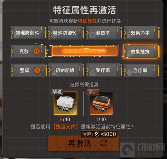 卡带再激活是指在卡带已经强化到一定等级后,通过消耗一定数量的整流元件,重新激活卡带的特征属性(词缀/副词条)。再激活后可以选择保留当前的属性还是替换为激活后的新属性。这一过程类似于崩坏三的圣痕洗词缀,只要愿意洗总是有的。
