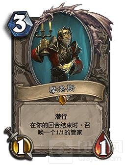 让我们从费用低的橙卡开始说起。第一张是摩洛斯,这是一张看起来就不可用的橙卡。因为这张橙卡的下限太低,随从的交换成本太低。在当今环境下流行的奥数飞弹,飞刀,火焰杂耍者,能够以极低的费用将他解决。使用上限也不够高,每回合只能召唤一个11,三个回合才勉强不亏。同等费用下即使小鬼召唤师也比他耐用,而套路方面只有骑士的夜色镇管理员和大胖可以跟他强行配合,且都是偏高的combo,属于难以使用的橙卡。我推测暴雪在低费栏加上这张橙卡的原因是害怕现环境下低费橙卡过于厉害造成环境过快。且高质量的低费橙卡非常可怕,即使是伴娘这样的随从也能轻易改变环境。所以放在低费这栏的他成了垫脚石。