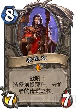 这张卡的特点在于难解,在现在这个缺少解牌的环境中。877的身材配上一把武器,很难在一个回合中同时解干净。跟他类似的橙卡是佛丁,但是佛丁是亡语效果害怕变形类的法术,而麦迪文是战吼效果。一般来说这类非常难解的橙卡都是好橙卡,尤其这把武器在后期具有很强的威慑力,可以召唤三次随从的效果非常bug,对于常用高费法术的职业会很好用。他的缺点在于,装备的武器效果不能当回合触发,效果实现很慢,费用偏高。对场面有比较高的要求。而且一旦武器过于厉害,就会满环境的囚徒,烦不胜烦。所以这张卡我不好给一个评价,他是不是好用也要看环境。