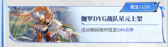 伽罗的DYG战队星元皮肤在活动期间以特惠价格上架。