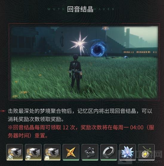 击败最深处的梦境聚合物后,记忆区内将出现回音结晶,可以消耗奖励次数领取奖励。回音结晶每周可领取12次,奖励次数将在每周一04:00(服务器时间)重置。