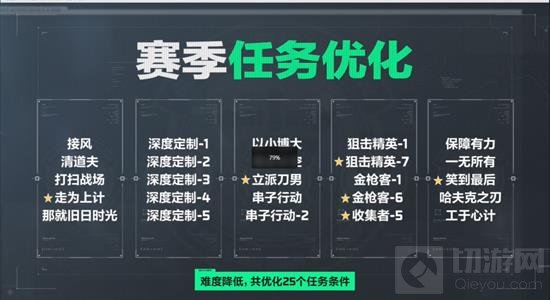 赛季任务优化:减少任务难度和运气成分,例如调整“走为上计”等任务。