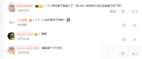 也有网友表示,“个人感觉是不是退少了,和LCK一样保持十支队伍就差不多了吧?”