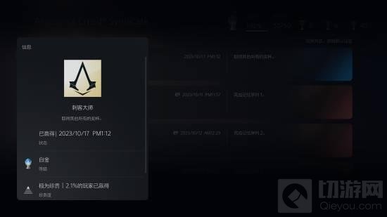 据最新数据显示,仅有2.1%的PlayStation玩家成功获得了《刺客信条:枭雄》的白金奖杯。这表明,尽管游戏已经推出一段时间,但能够完全解锁所有成就的玩家仍然是少数。这可能与游戏的难度、玩家的时间投入或者游戏的受欢迎程度有关。对于这款游戏,您有什么看法呢?是否觉得它值得投入时间去探索和挑战?