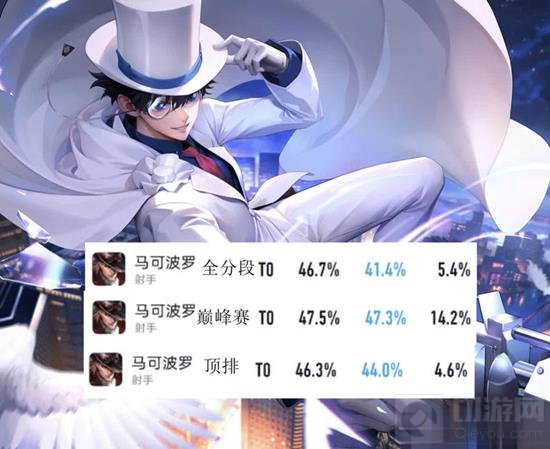 马可波罗的出场率高,但胜率却相对较低。在全段位中胜率只有46.7%,排在倒数第一;巅峰赛1350+的胜率为47.5%,顶端排位的胜率为46.3%,均处于垫底位置。这与他的高出场率形成了鲜明对比。