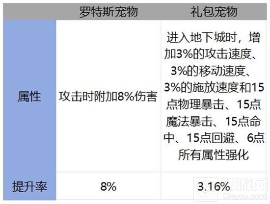 史诗级罗特斯宠物是当前版本唯一的毕业宠物,以下是抗魔值相同的神器级罗特斯宠物与节日礼包中的神器宠物的属性及伤害提升率对比:
