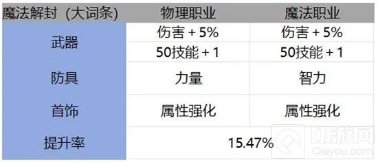 魔法解封的改变不会增加抗魔值,解封后任何属性增加的抗魔值都是相同的,需要使用宇宙精华和奇迹变换石进行属性洗涤。以下是洗涤毕业后带来的属性及提升率: