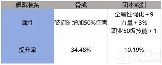 骨戒与团本戒指在相同抗魔值下的伤害差异较大,是否拥有骨戒是许多玩家判断是否水抗磨的主要依据之一。以下是两者提升率的对比: