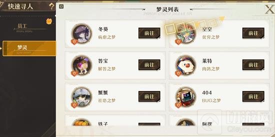 在梦灵列表中找到目标梦灵,点击“前往”按钮进入其主界面。