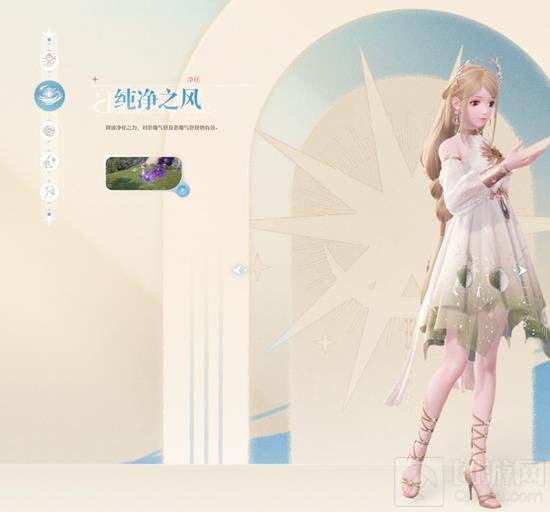第二款,纯净之风,洁白的裙摆,温柔的配色,它会赋予我们的角色对抗恶魔的力量,将恶魔直接净化。