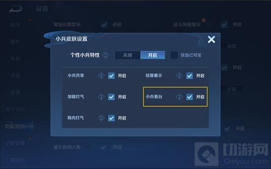 关闭选项:如果关闭看台开关,局内将不会显示小兵看台。