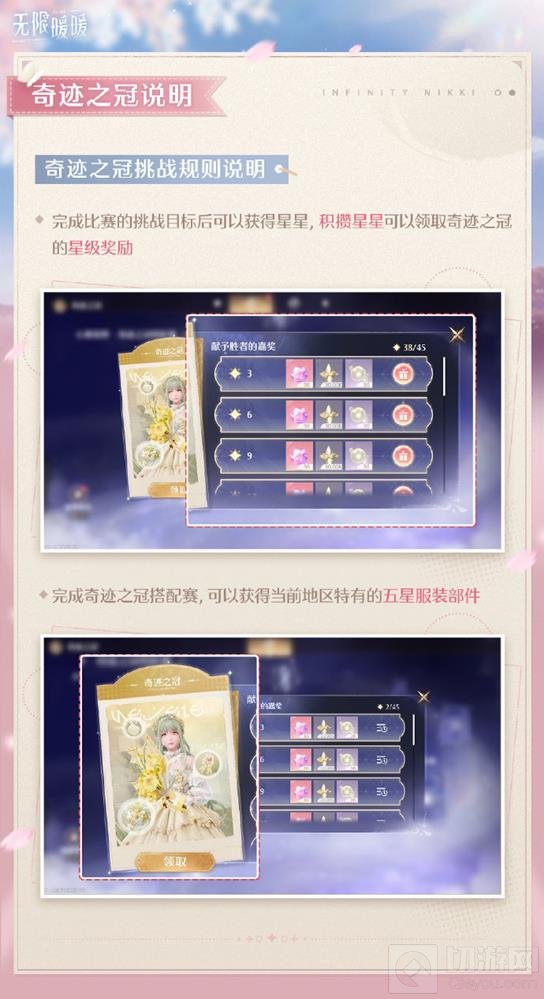 星级奖励:完成比赛的挑战目标后可以获得星星,积攒星星可以领取奇迹之冠的星级奖励。