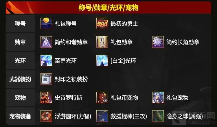 称号、勋章、光环、宠物