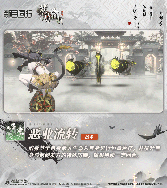刑身基于自身最大生命为自身进行恒量治疗,并提升自身与两侧友方的特殊防御,效果持续一定回合。在团队受到伤害时,使用此技能可以迅速恢复生命值,并提升防御能力,为团队提供持续的生存保障。