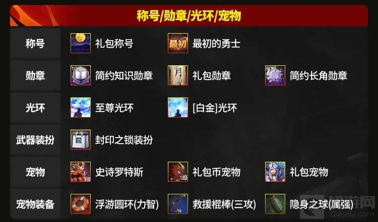 称号、勋章、光环、宠物