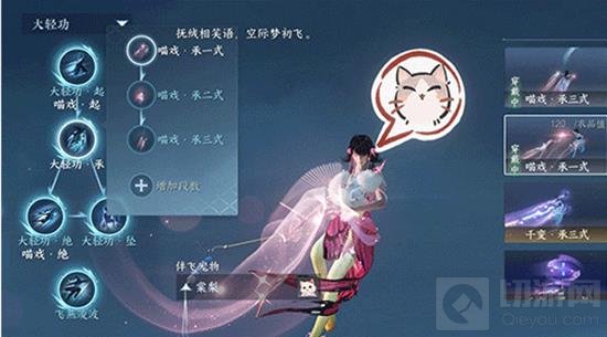 个性化体验:【喵戏】轻功皮肤支持自由更换宠物猫咪,玩家可以在【外观】-【武功】-【轻功皮肤】界面中选择并穿戴,同时在【伴飞宠物】中选择自己的猫咪。