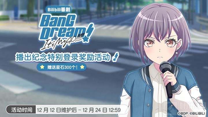 为了庆祝「BanG Dream! It's MyGO!!!!!」在bilibili番剧的正式播出,12月12日维护后,游戏内即将开展「BanG Dream! It's MyGO!!!!! bilibili番剧播出纪念特别登录奖励活动」,活动期间内登录游戏都可领取登录奖励!