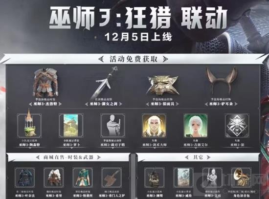 游戏将推出杰洛特全套服装、长剑极品外观【巫师3·湖女之剑】以及狼面具等联动外观。